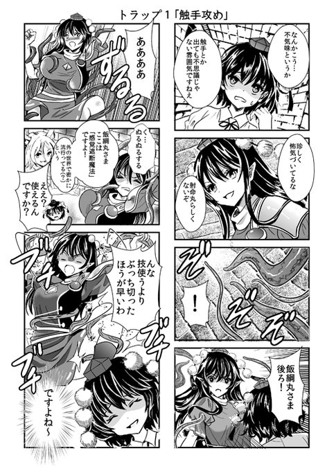 【紅楼夢新刊サンプル1】 「エ口トラップ金字塔へようこそ」B5 16p(巻頭カラー漫画有)飯綱丸&文&典ギャグ本。月人が作ったエロトラップだらけの偽物のピラミッドに誤って潜入した3人の運命は?!