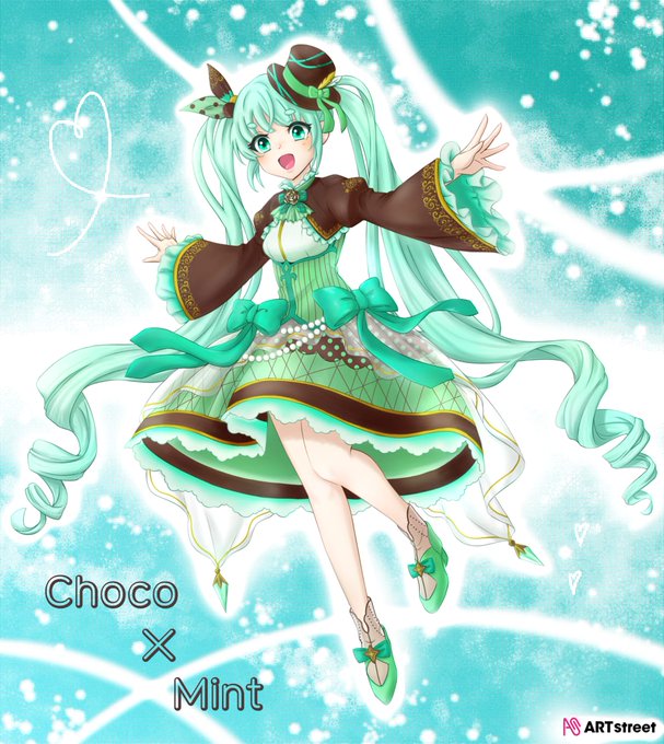 Choco×mint girl♡ https://t.co/hZrWlVSkaJ #ARTstreet #MediBang #女の子 #青 #コンテスト #テンプレートdeぬりえコンテスト #チョコミント
