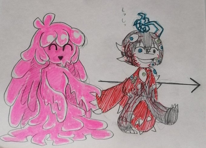 鉛筆+α落書き 溶ける愛ちゃんとロラの幻覚を少々