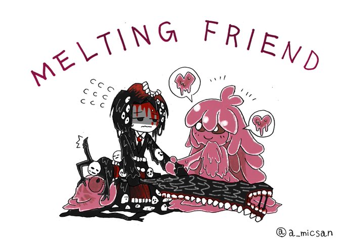 「同じスライム(?)っぽいからお友達になれるかも?なmelting love ちゃん」と「まさか気に入られるとは思わなかったthe smile roland」