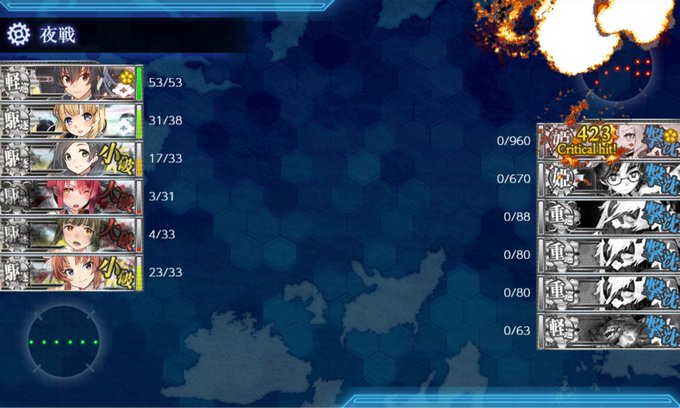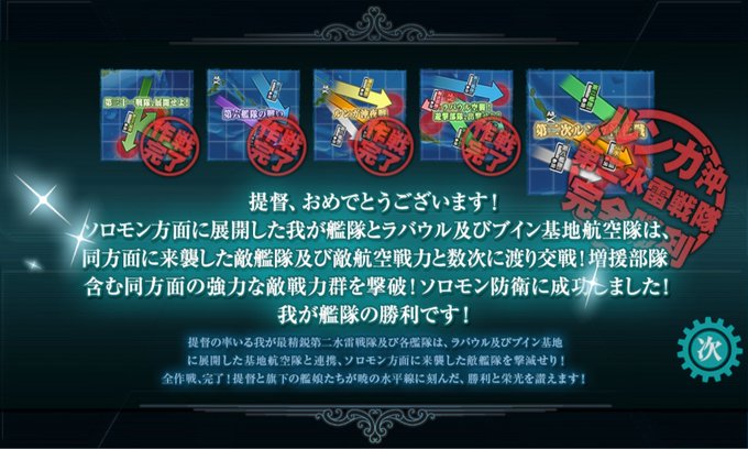勝ったッ!E5丙完ッ! 遊撃部隊7隻編成の所を誤って6隻で出撃してしまったが無事撃破でけた 残すは宗谷掘りのみ 途中高波を改二にするなどした