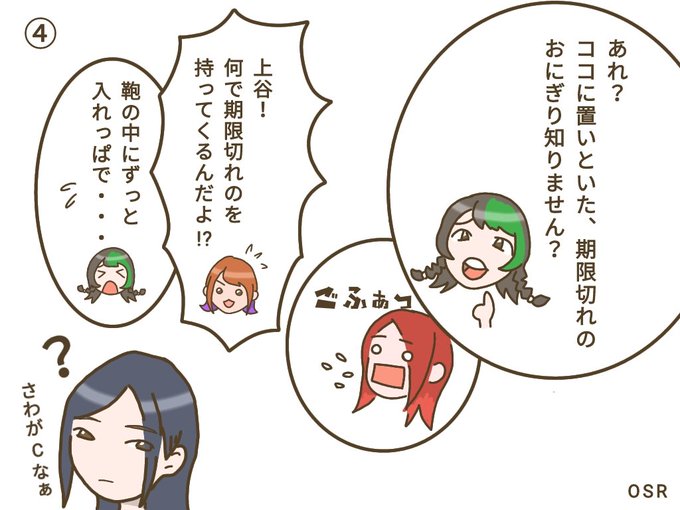 鼻も心も折れません💣 ③:I just wanted to eat rice balls. ④:Where is the expired rice ball placed here? Why bring food that has expired!? I put it in a bag and forgot it all the time... #AZM 選手 #林下詩美 選手 #上谷沙弥 選手 #レディC 選手 #プロレス似顔絵