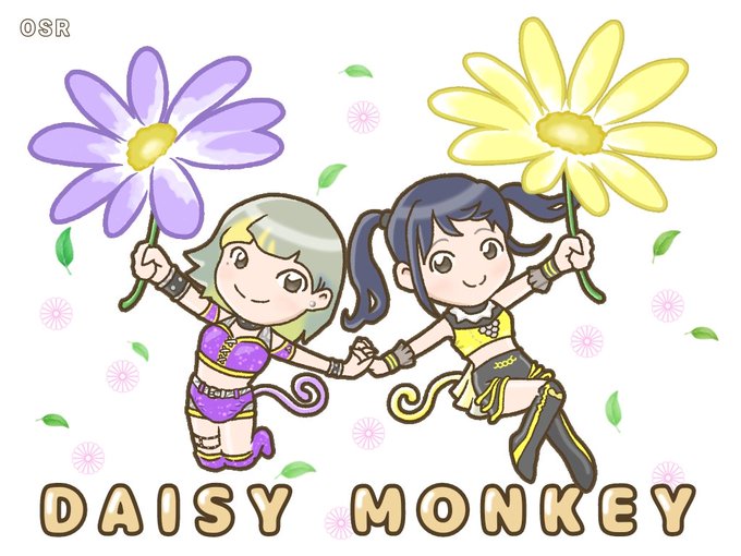 デイジー(daisy)の花名の由来は、デイズアイ(day's eye) ="太陽(日)の目"らしいです🌼 太陽のように更に大きく咲き誇るよう応援しています🌼🐒 #tjpw #でいじーもんきー #でじもん #DAISYMONKEY #鈴芽 選手 #遠藤有栖 選手 #プロレス似顔絵 #イラスト