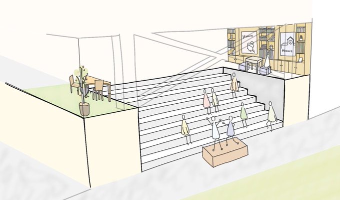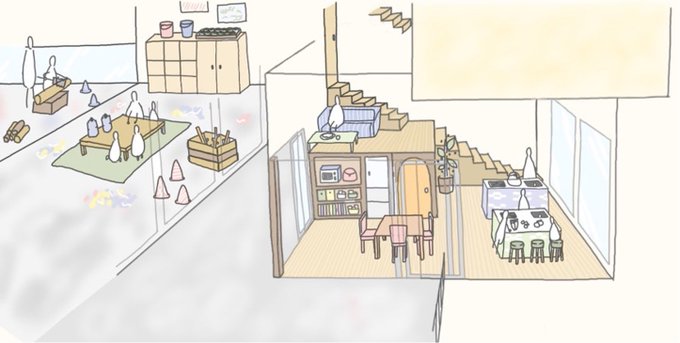 課題のプレゼン用にパーススケッチを描くなどしました。(その1) 色塗りは後輩ちゃんです。