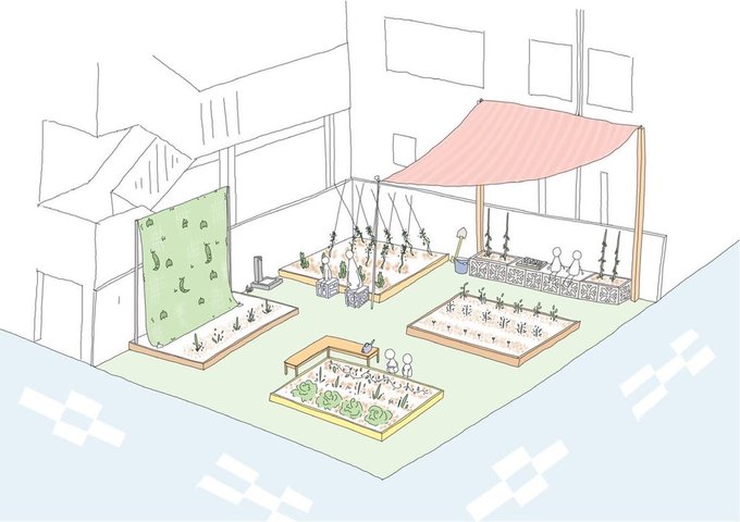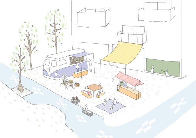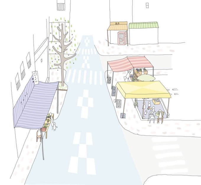 課題のプレゼン用にパーススケッチ・鳥瞰図モドキを描くなどしました。(その3/終) 色塗りは後輩ちゃんです。