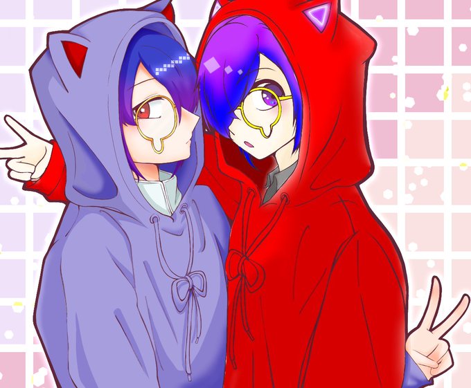妹と塗り合作した 線画、紫パーカー:わし 赤パーカー:妹 トレ素材お借りしてます。