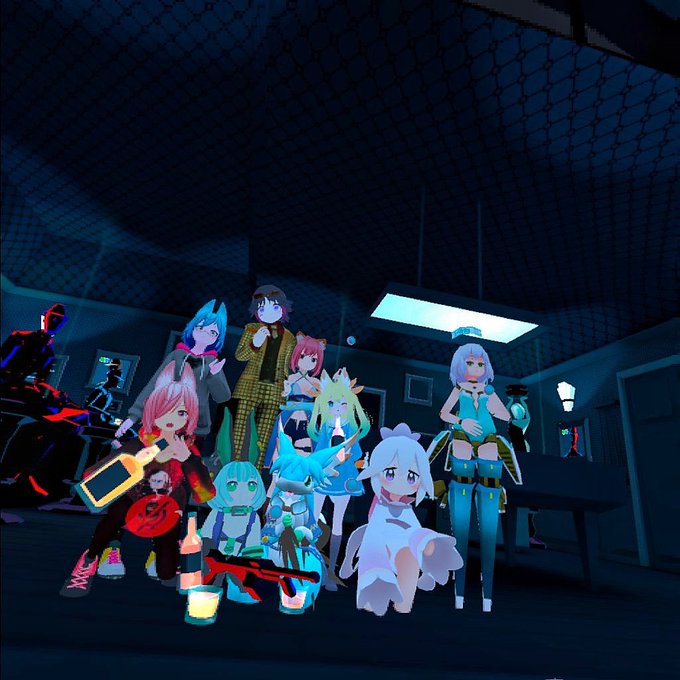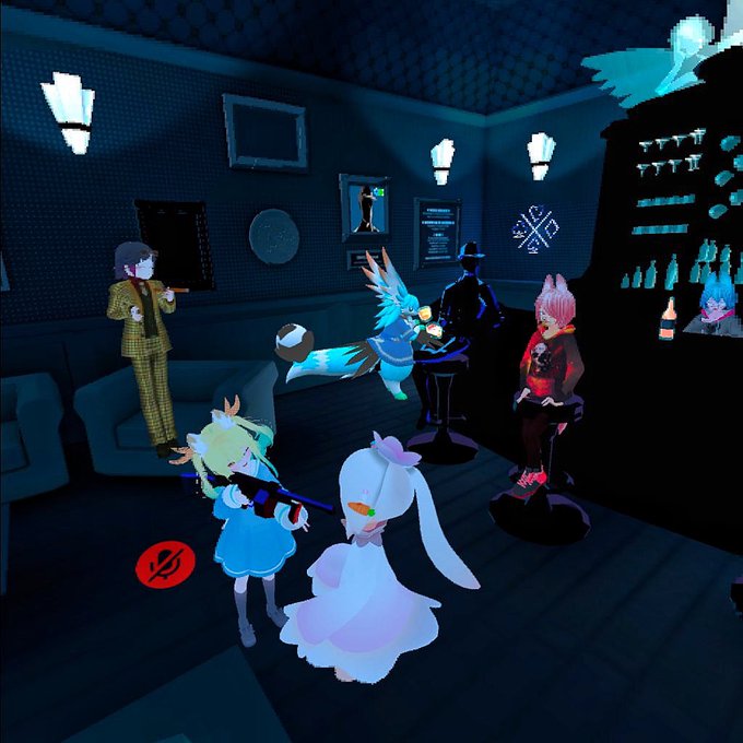 ⑤酔いました ⑥不穏な雰囲気ワールド ⑦マフィア・バーでやりたい放題ですね🥃 ⑧集合写真2📸 ⑤で 酔ったー😵💫 動けなかったので座ってたら、そにさんが、ずっと側に居てくれた 今日も楽しかったー!! ありがと✨☺️ #VRchat