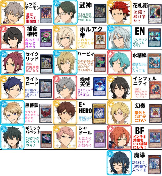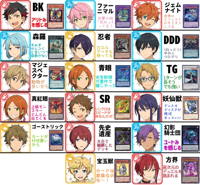勝手な妄想で夢ノ咲デュエリスト名鑑を作りました(遊戯王アニメネタをやや含みます)