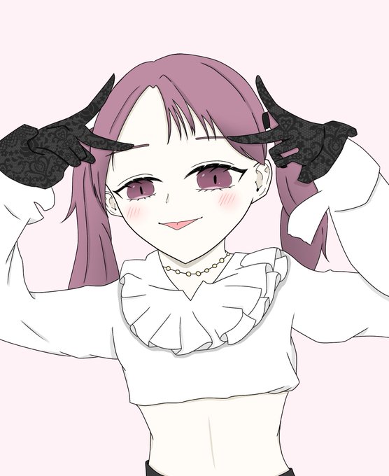 @utau_uta_ こんな感じ!コテキャ! お腹出てるーー!肩出てる! 髪型ウルフ!色はイラスト参照でお願いします!