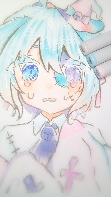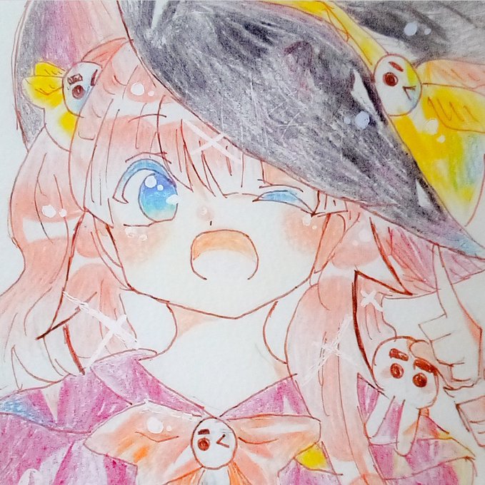 @ippanjin_hito ちゃんの線画アナログでも塗り塗りしたぁ~パステル可愛い(*ゝω・)ノ♥