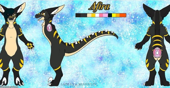 @skipthewolf Here is my fursona Afira the raptor she's also is a OC student in my hero academia. She's very sweet, she loves to play video games, and listening to music. And she can change her size from 5,4 to 6,0 😁 she has a human form as well but still need to make her refsheet.