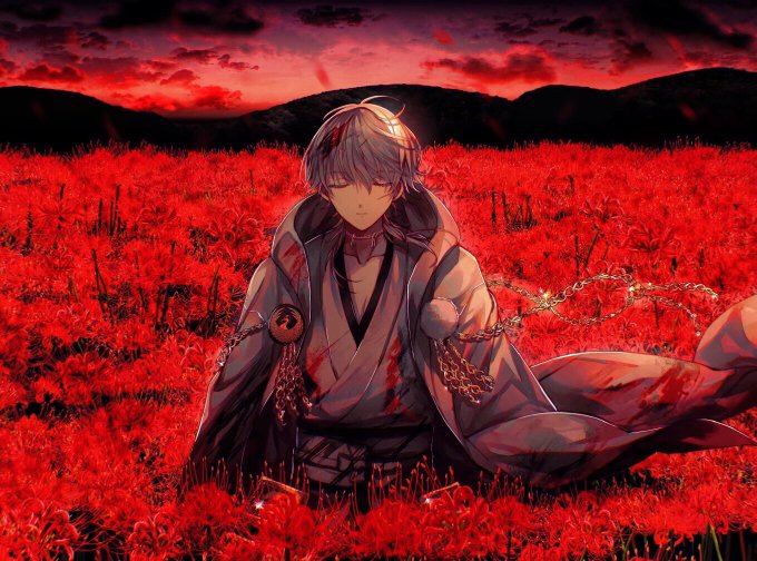 【お題箱】赤い華の中の鶴丸