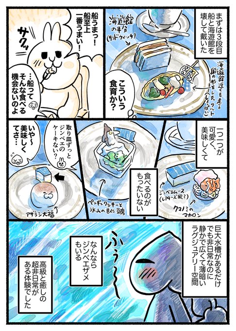 水族館のVIPルームでアフタヌーンティいただいたよレポ漫画② (※7月海遊館が期間限定でやっていたもので現在は開催されていません) 海遊館さん…アフタヌーンティ、すっごい良かったです…