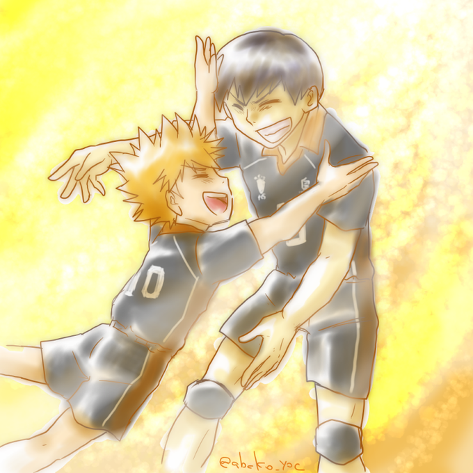 #影日版深夜の真剣お絵描き60分一本勝負 開催おめでとうございます! 飛雄が「独裁の王様」でなくなったのは日向のおかげというのを現したかったのですがギャグテイストになってしまいました;1時間クオリティ;