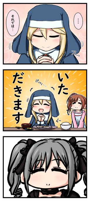 『朝のお祈り』を興味津々の蘭子ちゃんに教えてあげるクラリスさん