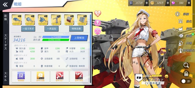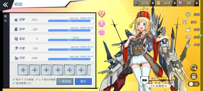 ヤウズの強化完了ー! and ボルチモアのレベルカンストー! ヾ(●´∇`●)ノ #ブルーオース #蒼藍の誓い