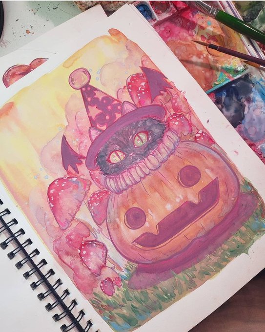 @meatgirI @Riocakes Hi, Im Ama! A traditional painter and mom! I enjoy painting whimsical babes and the bizarre! I have all sorts of goodies in my shop currently ranging from stickers, prints, to tees, and charms!✨