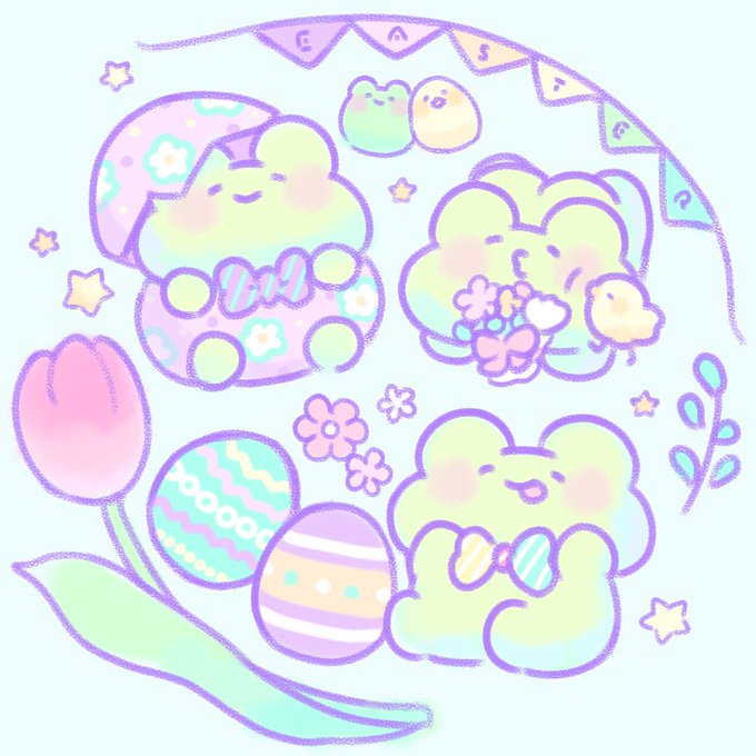 HAPPY EASTER🐸🐣🌷🌟 #Easter2021 #ゆるいイラスト #ゆるけろ