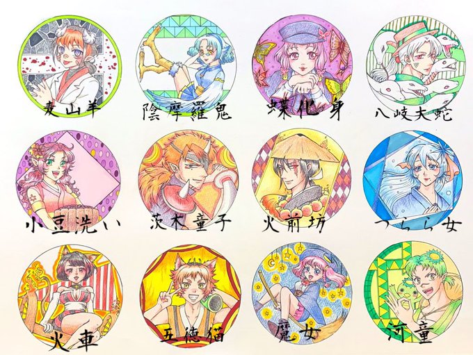 #過去絵を投げて絵を描いた気になろうキャンペーン 久しぶりに妖怪ちゃんの新キャラ考えたいし、既存妖怪ちゃんたちの新衣装なども考えたいな🥰💕我が妖怪ちゃん大好きだぁ♡
