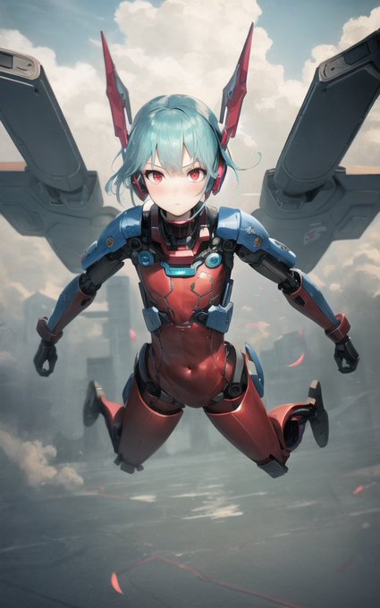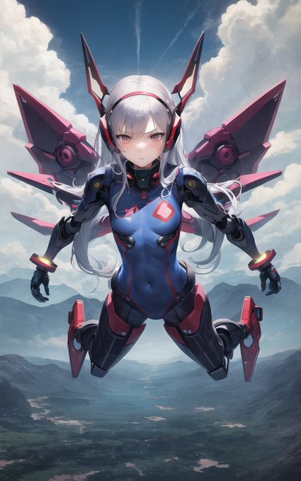 #ControlNet で昨日・一昨日のメカ娘飛行形態のポーズ(DesignDollで作成)をdepthで読み込ませてやってみた結果。ほぼ意図した感じになってるな?