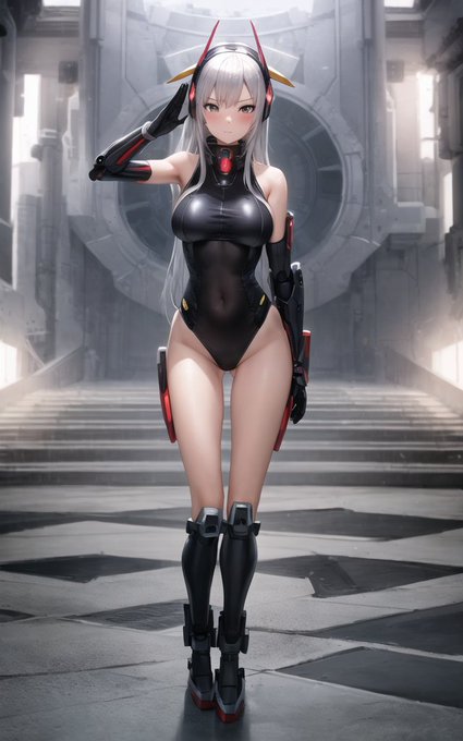 #ControlNet 、敬礼ポーズをdepthで読み込ませてメカ娘でやってみた結果