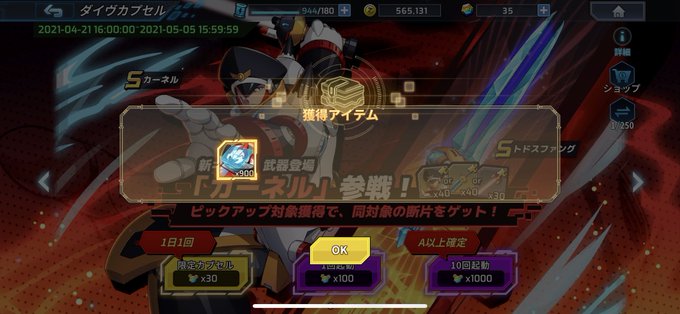 今回引いた新規Sキャラ