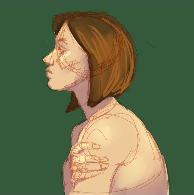 5. By now, i detail the face and refine some of the edges. i usually hide the sketch layer for this, but keep it there so i can keep coming back to it if i need to.
