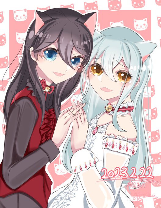 #猫の日 #創作 先月の猫の日イラスト完成させた記念で載せる! うちの優愛ちゃんと春香ちゃん! 可愛くかけて満足😊✨