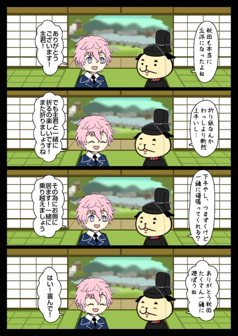 秋田藤四郎は1日目顕現した四口目の一口。キラキラした子供だと思っていたら戦闘の時は凛々しく戦ってくれてああやっぱり刀なんだなーとしみじみ思ったものです。頭をなでなでしたい男士上位に食い込み続けてます