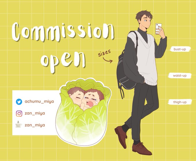 Helloo I'm opening commission for the first time! Feel free to dm me on twt or insta if you're interested!