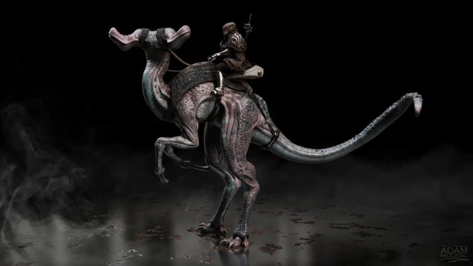 Some creature process… was in a #StarWars #TheMandalorian mood a few months back… had some fun doing a hammer horse rider… #creaturedesign #concept #conceptartist #dinosaur #alien