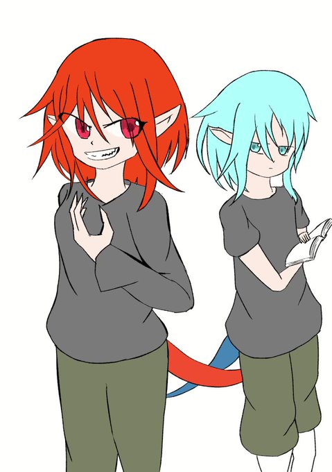 アナタが考える色が対照的な人外兄弟/姉妹 #人外版深夜の真剣お絵描き60分一本勝負 炎龍の姉と氷龍の弟を欠こうとしたけど時間が足りねぇ…