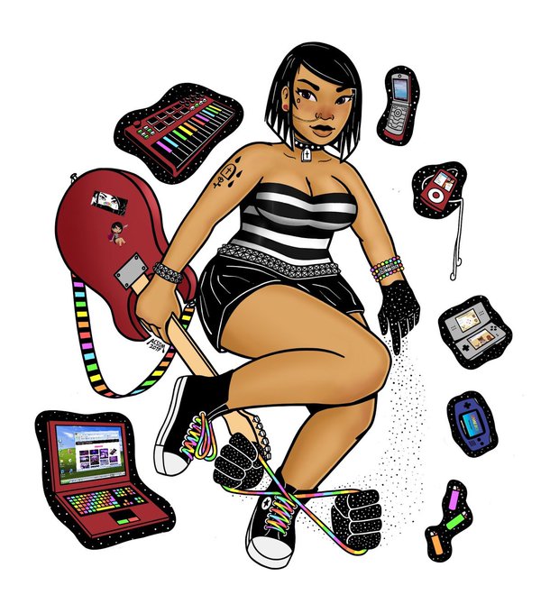 for anybody not clued in, the girl in my drawings is @anjusucks420, who is also an artist that co-owns and designs clothes for @AnjuSupplyCo, and produces music under the alias 'ANJU Online!'. her music can be found at https://t.co/4FzTUMgVVP