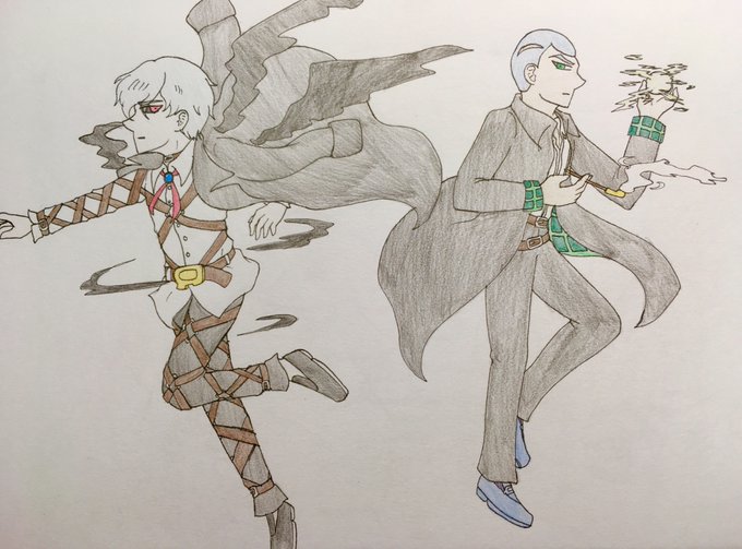 #ジョジョハロウィン2021 正直自分でも変だと思う箇所ありますが参加させていただきます。 リゾットが悪魔で、ホルマジオが退魔師です。