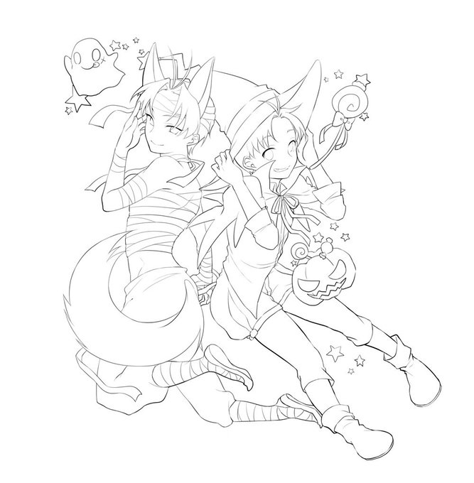はろいん絵あげるでー!そしてわいも線画一緒にあげとくんでみんな塗って!w消し忘れの汚れとかあると思うんで必要に合わせて消してください…線画汚くて申し訳ない…