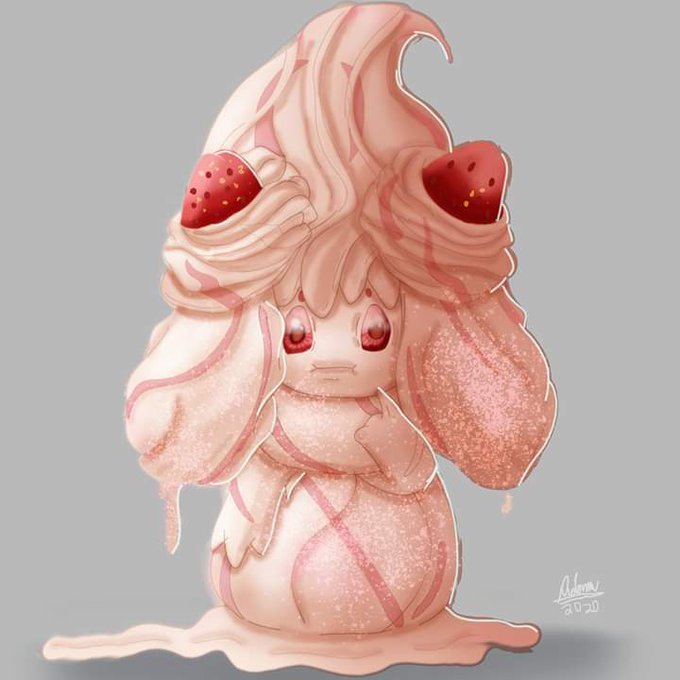 "When it trusts a Trainer, it will treat them to berries it's decorated with cream. When Alcremie is content, the cream it secretes from its hands becomes sweeter and richer."