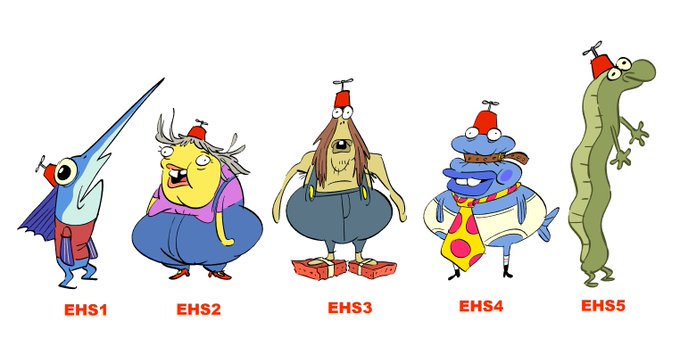 Here are the characters I designed for "The Nitwitting." EHS5, EHS7, and EHS10 are characters from past episodes that I wanted to bring back. Some of the others were inspired by weird fish from real life (blob fish, sword fish, stumpnose fish.)