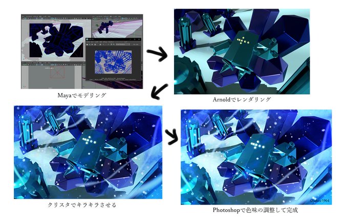 レジアイスを作りました? モデリングはmayaでやってからクリスタとフォトショでエフェクトを加えたり調節したりしてます。