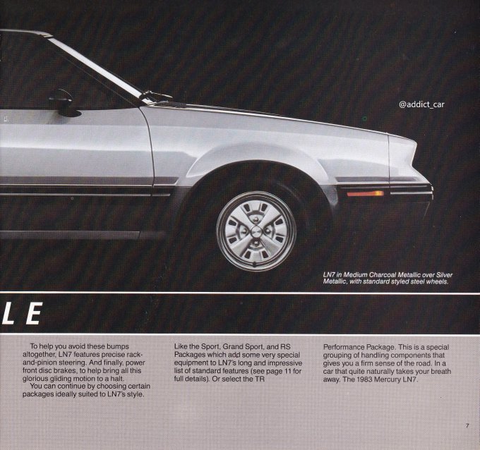 The LN7 was aimed at younger drivers looking for an affordable, sporty commuter car. Mercury descried it as: 'Racy. Seductive. And above all sophisticated...This is the way man & woman were meant to drive'. The LN7 was only sold 1982-3, but its Ford EXP sister lasted until 1988.