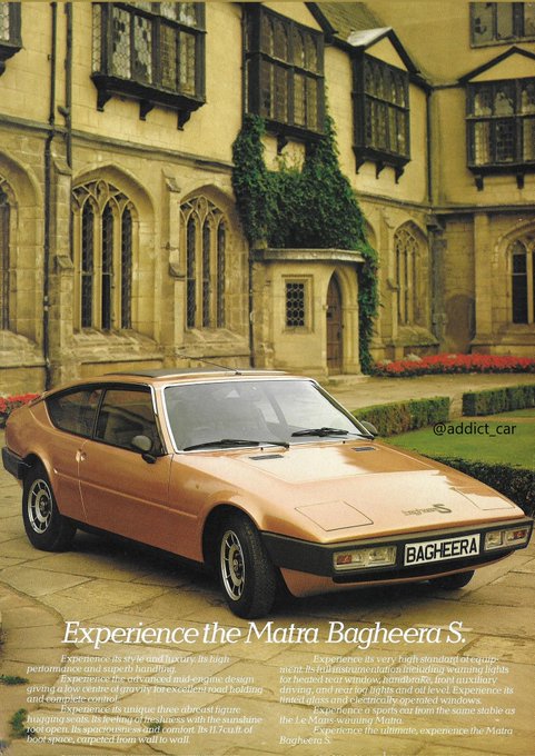 Bagheera prices were well above rivals like the Triumph TR7 and Fiat X1/9 and sales were predictably slow, so a RHD conversion was later arranged to make the car more appealing. The Bagheera's successor, the similarly-configured Talbot-Matra Murena was never offered in the UK.