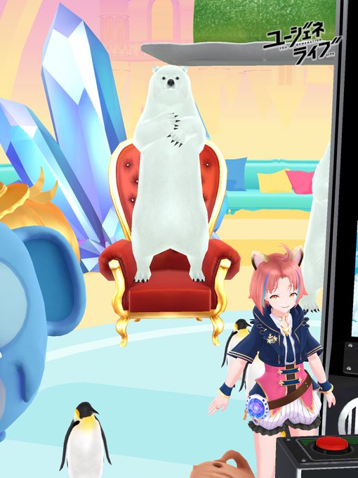 クイーンチェアの上に綺麗に乗ってる白熊ワロタw プリンの上のミニノランも可愛かったー🥰 #ユージェネライブ