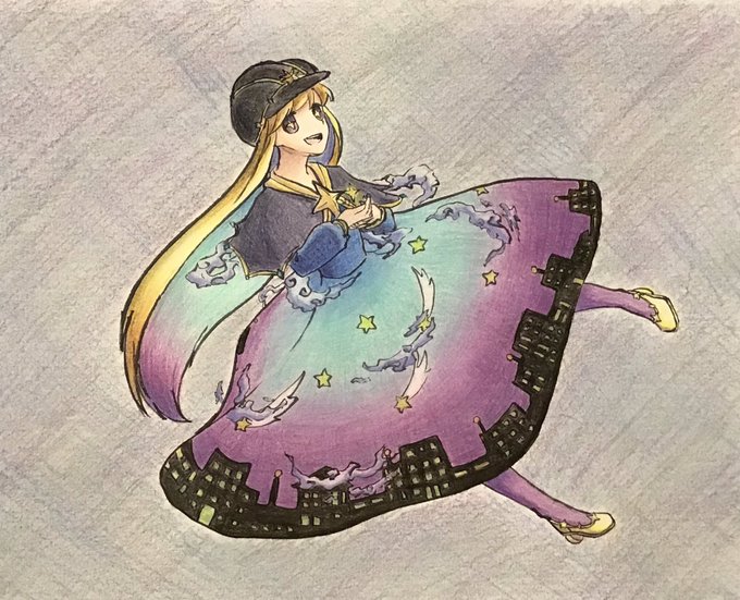 色鉛筆練習絵 お題「夜空の擬人化」 お題くださってありがとうございます‼️楽しかったです‼️
