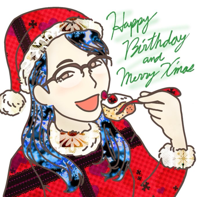 右上 おすしちゃん メリクリ&ハピバ ちょっとモダン風🎅
