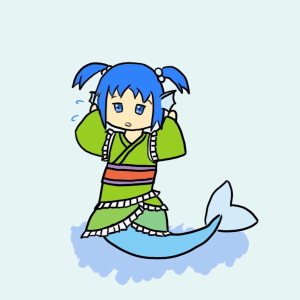 お正月微塵も関係ないけど描き初めわかさぎ姫! 水中にいる感じで描きたかったけど結構むずかしいのん。ω。
