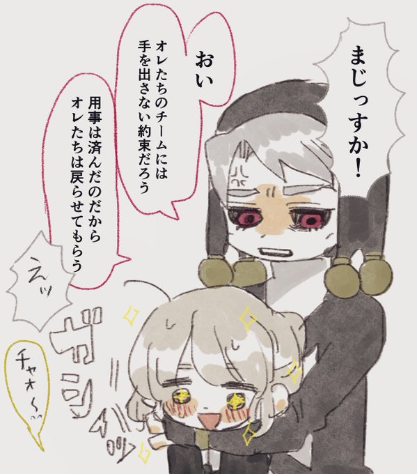 生存イフ ❄️ ちょっと🔫 ※❄️は喉を潰されてるので背中に文字を書いています