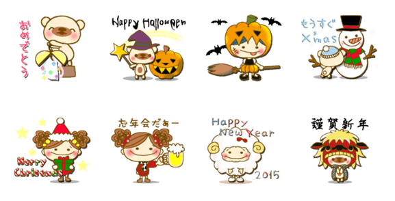 クリスマス&忘年会&お正月のイベントスタンプも満載♡