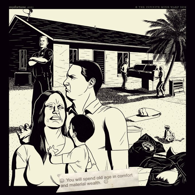 misfortune. #081 - "You will spend old age in comfort and material wealth." | #misfortune #illustration #series #081 #blackandwhite #drawing