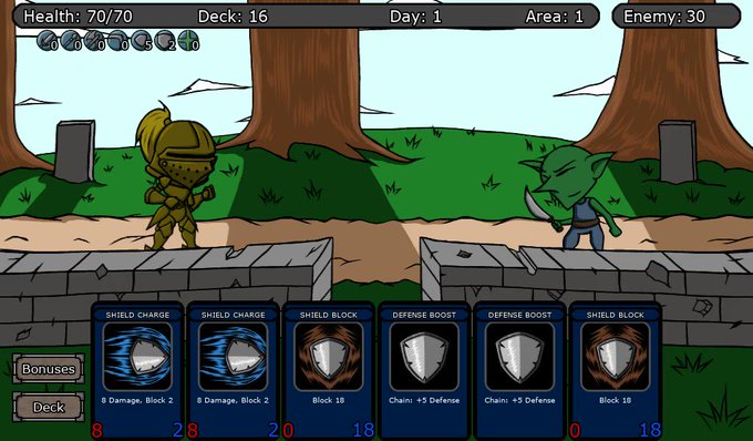 I've been working on a way to improve the defensive options that player has, so I implemented card chaining, and the first card added is a defense boost~ #gamedev #indiedev #GodotEngine #cardgame #indiegame