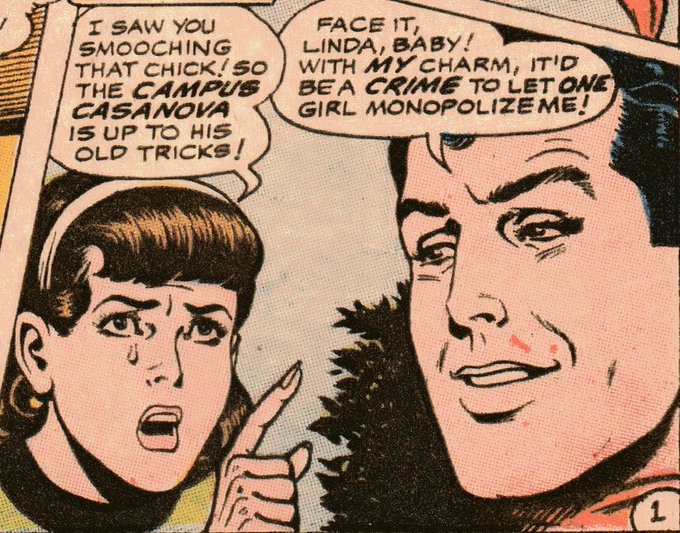 Action Comics - 1968. Linda Lee Danvers learns her fiancé, Gary Sparks, is a cheat. Peering into the future, she realises marriage to him would be disaster. She hatches a plan for him to 'chicken out' and break the engagement off. A hug and a kiss is all it takes...