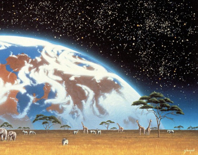 "artist boris vallejo's visualization of humanity meeting its destiny" boris vallejo cover art for future, july 1978